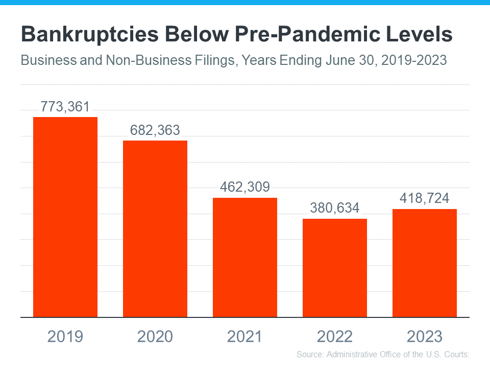 The numbers for 2021 and 2022 were lower than in more typical years. That’s in part because the government provided trillions of dollars in aid to individuals and businesses during the pandemic. So, let’s instead focus on the bar for this year and compare it to the bar on the far left (2019). It shows the number of bankruptcies today is still nowhere near where it was before the pandemic. Both of these factors are reasons why the housing market isn’t in danger of crashing.