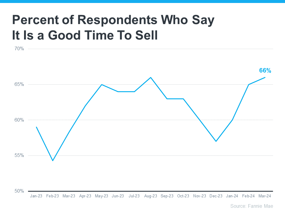 Here’s something else to consider. According to the latest Home Purchase Sentiment Index (HPSI) from Fannie Mae, the percentage of respondents who say it’s a good time to sell is on the rise (see graph below):