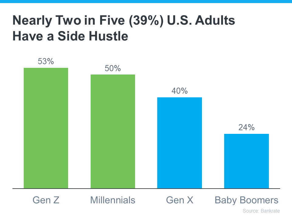 Does the rising cost of just about everything these days make your dream of owning your own home feel less within reach? According to Bankrate, many people are seeking additional income through side hustles, possibly to cope with those increasing expenses and save for a home. This trend is particularly popular with younger individuals who may be dealing with student loan debt (see graph below):